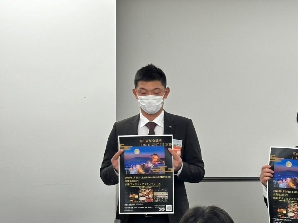 今回の来訪で感じたのは、これほどまでに富山や日本を好いてもらっているにも関わらず、私たちは太平山JCや香港のことを知らなすぎるのではないかと思いました。姉妹JCの関係があるお陰で富山JCには、ASPACや世界会議以外にもこのように身近な国際の機会があります。是非来年の新年式典は他のメンバーにも体験していただきたいと思いますし、逆に姉妹JCが富山に来て下さった際にはLOMの全員で温かく迎えていただければと思います。