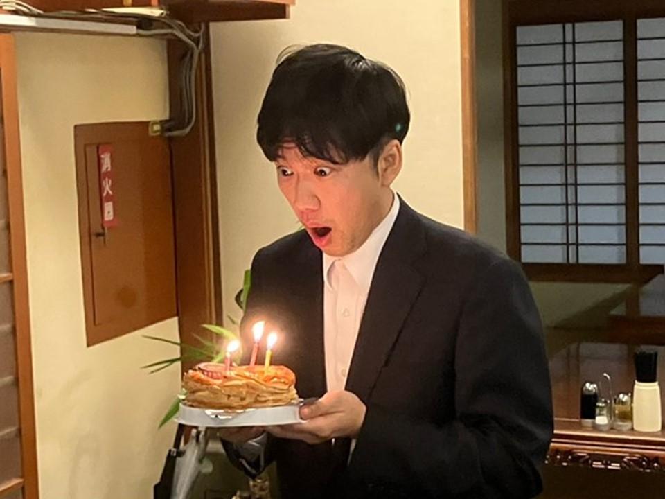 120%のブレスで誕生日ケーキの火を消す辻委員