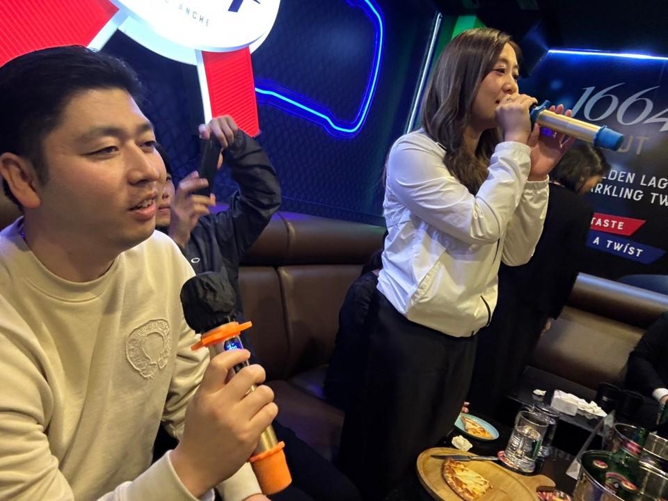 大部屋に入ってからも次々と現地メンバーや台湾JCのメンバーが押し寄せ、すぐに室内は人が座れないほどになりました。広東語か中国語の曲が何曲か歌われる中、突如としてミシェル理事長が宇多田ヒカルの「First Love」を日本語で歌い始め(しかもすごく上手い)、日本メンバー揃って大興奮でした。その後も日本の歌を他のメンバーが歌ってくれるなど、ポップカルチャーの偉大さを実感すると共に、太平山JCがどれだけ富山JCを大切に思っていただいているかがひしひしと伝わってきました。