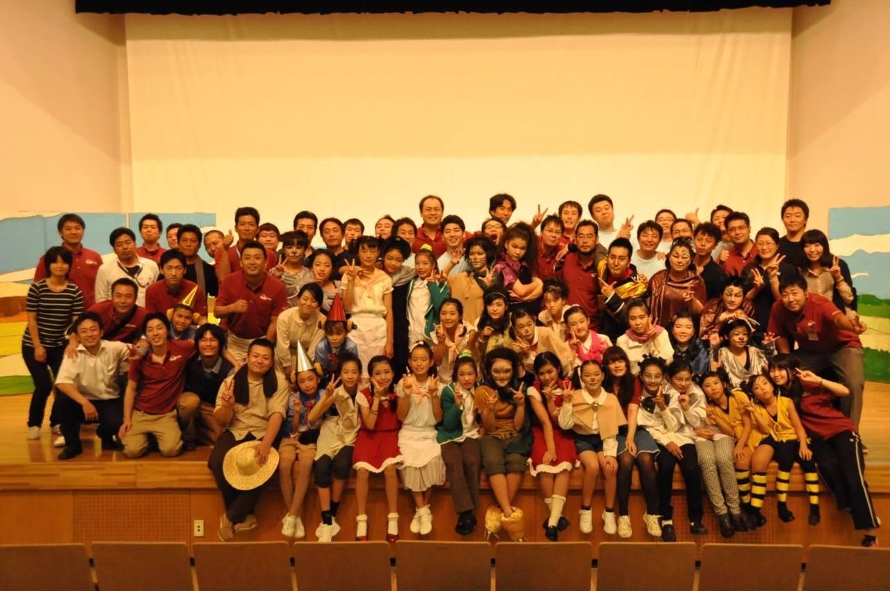 そもそもこの事業はどんなものかといえば、夏休み期間を全部使って子どもたちがミュージカルを練習し、8月31日に富山大学黒田講堂で保護者の皆さんに発表するというものでした。総勢30名の子どもたちが集まり、ほぼ毎日が練習日。演劇指導は富山大学の演劇サークルから2名来てもらい、作曲家の先生や歌の先生も参加して歌は自作、大道具作成や日々の演劇指導はLOMの現役会員全体で行うというとても壮大な事業です。