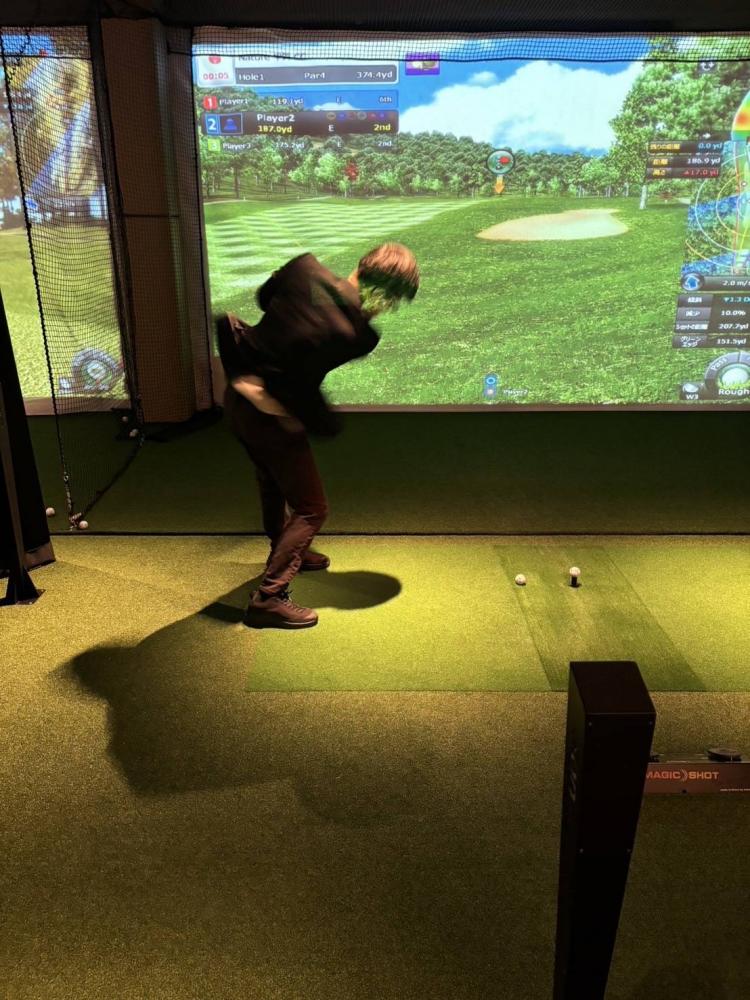 場所は・・・あの話題の【バーチャルゴルフ Ponto】!打ちっぱなしはまだハードルが高い・・・そんな人でも気軽にゴルフ体験ができるスポットです。