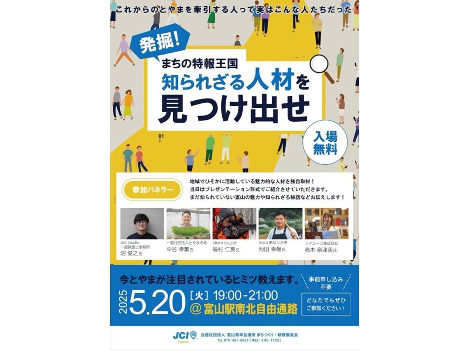 さて、本題に入ります。2025年5月20日(火)に、5月度公開例会「発掘!まちの特報王国 ~知られざる人材を見つけ出せ~」を開催いたします。