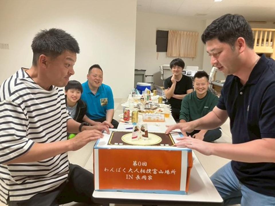 さて、同日長岡伸剛先輩のご自宅にて相撲同好会が開かれ、私たち次世代育成委員会がお邪魔し、相撲同好会の皆さまとの合同という形でわんぱく相撲の打ち上げを行う運びとなりました。