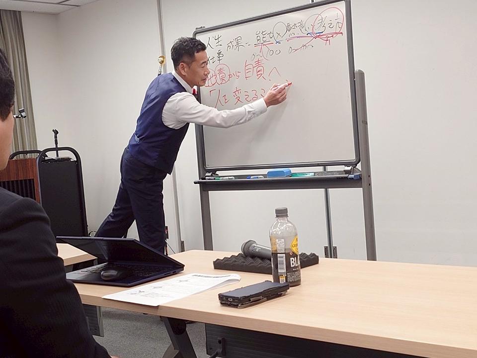 今回のテーマは『「人間力」をベースとした経営学、マネジメント、人材育成』。講師に株式会社石橋 専務取締役 槙本 圭太様をお招きし、実体験に基づく貴重なお話をご講演いただきました。