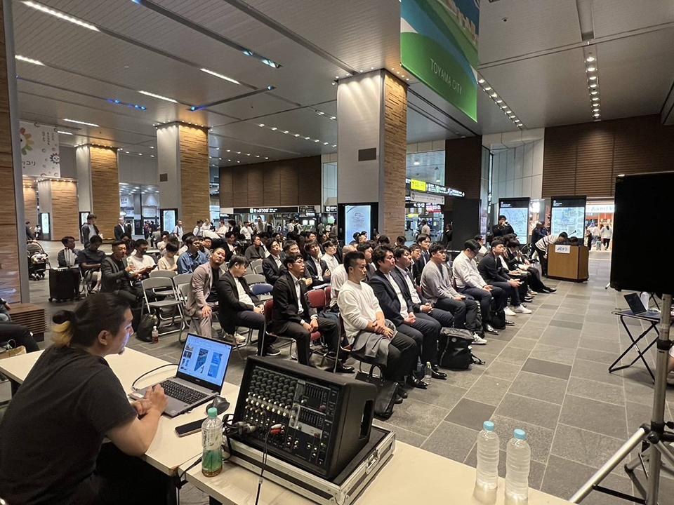 開催地が富山駅南北自由通路であり、駅構内を歩く多くの人に見られながらの例会はドアクローズの会場とは少し違った雰囲気であり、例会中に「気づきメモ」でリアルタイムに質問や意見を伝えられるという点でも参加者との距離が近い例会になったのではないかと感じています。