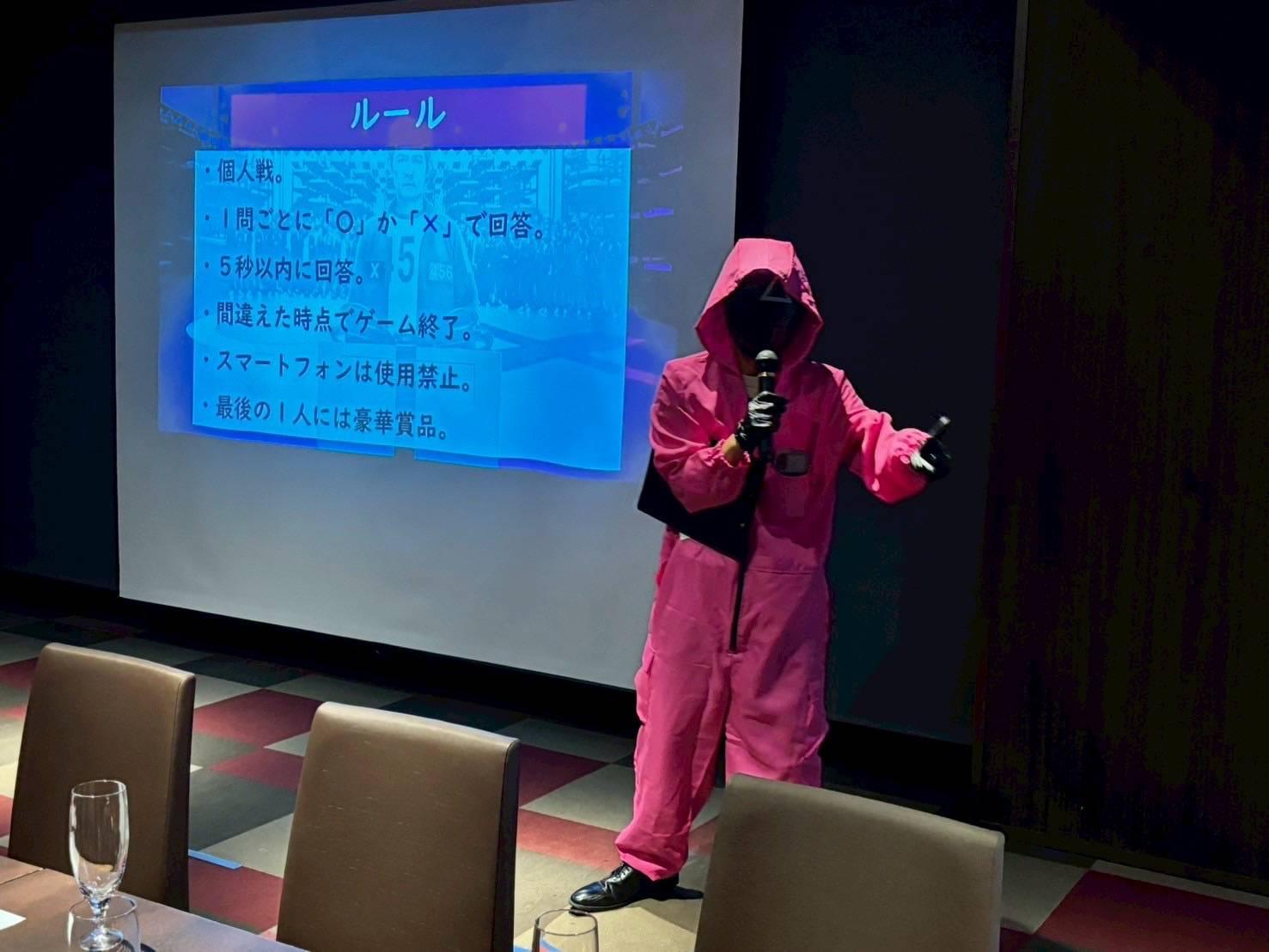 夜のLOMナイトでは、財務・規則・渉外委員会の方が「イカゲーム」をモチーフとした企画を準備してくださっていて、仮面をかぶった演出やムービーの完成度、豹変するメンティーの姿など、驚きの連続でした。