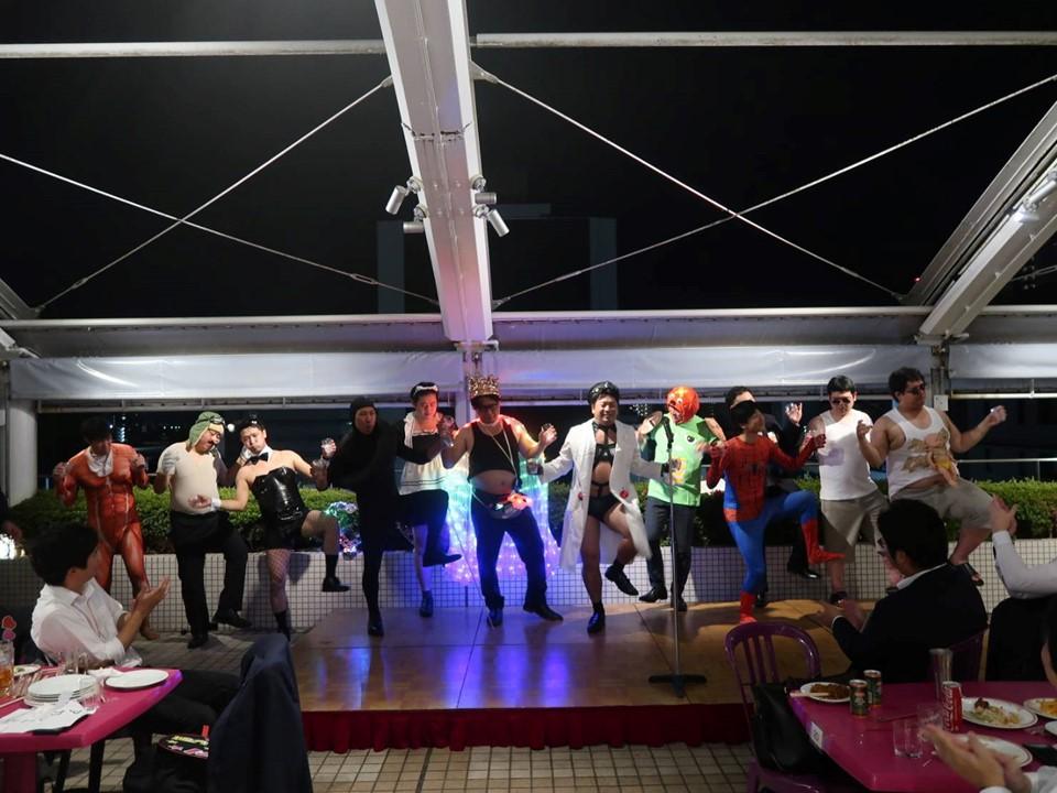 表向きの仕切り役は森口くん。しかし、実際の采配は浅井くん。裏で空間を操るその姿はまさにフィクサー。二次会のペントハウスではカラオケタイムが勃発。浅井くんの神がかった選曲により、みながマイクをにぎり、笛を吹かれ、酒を浴びる。足をギターにして演奏し始める同期、TERUと目が合ってイッキをさせられる同期など、彼のサイコパスな目と表情で繰り出されるイッキの煽りは、場を盛り上げるだけでなく、参加者の自我と肝臓を破壊する一種の儀式。