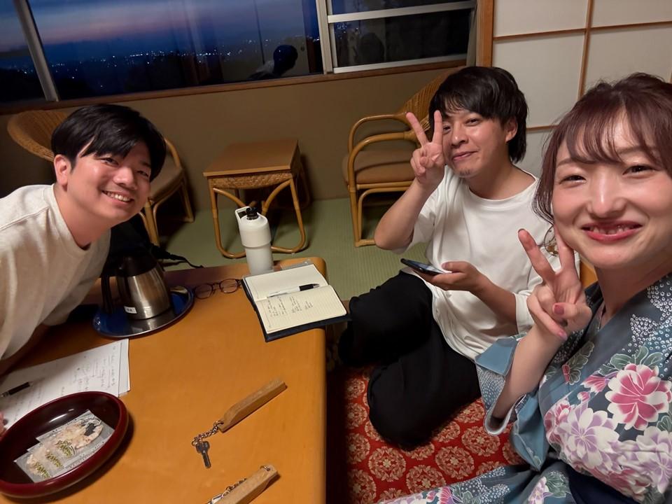そして夜はお待ちかねの懇親会!呉羽ハイツの美味しいご飯を囲み、普段話す機会の少ないメンバーとも語り合えて大盛り上がり。課題の事業構築は白熱し、気づけば夜更けまで…というグループも。
