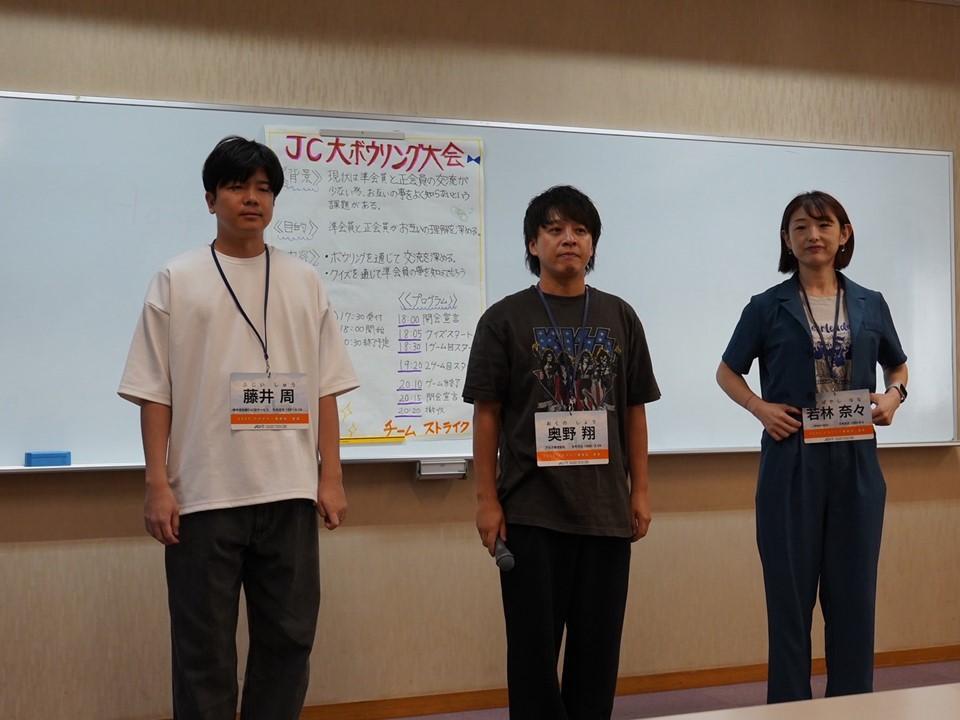 「一度背景からしっかり見つめ直そう」となり、「準会員(私たち)と正会員との交流が少なく、お互いをまだよく知らないよね」という課題に気づきました。そこから目的を「準会員と正会員が理解を深めること」と定め、その目的を実現する手法として「JC大ボウリング大会」にたどり着きました。(この時既に朝の4時)