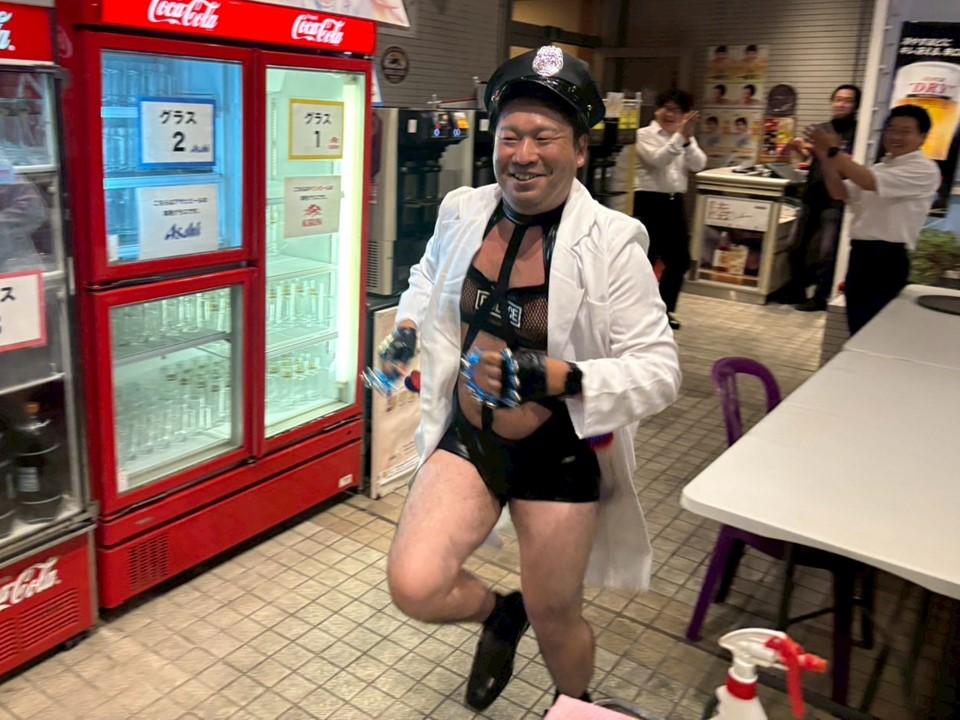 その流れを受け、大懇親会では、私自身も挑戦としてメイドに挑ませていただきました(笑)。体格的に衣装を着れるかどうか不安でしたが、田島委員長がわざわざ東京まで足を運んでご準備下さったおかげで、無事(?)に舞台に立つことができました。