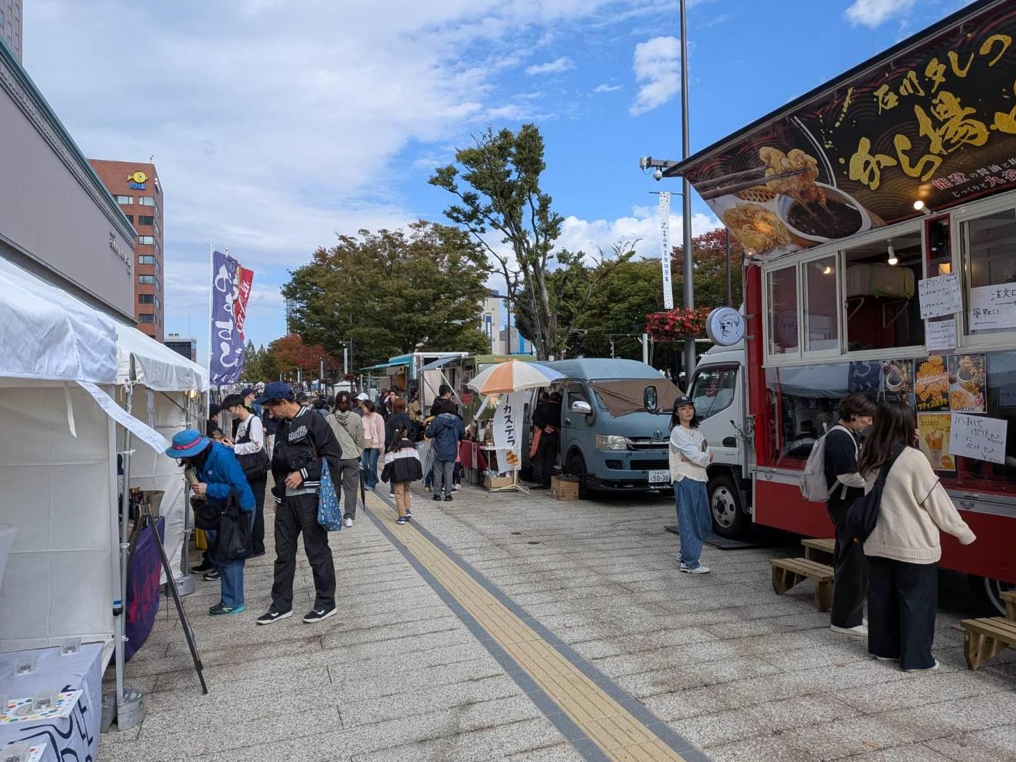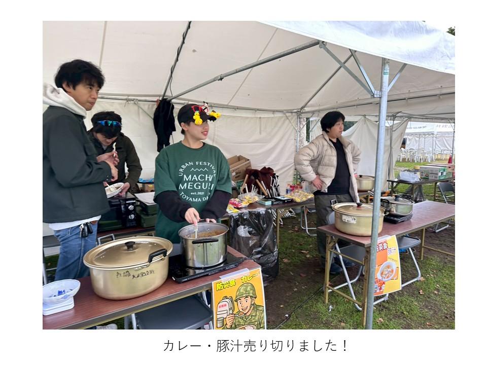 1日、2日の天気予報は降水確率が80%ぐらいで、気温も低い予報だったので、雨と寒さに耐えきれるかと心配していたのですが、委員長の晴れ男パワーのおかげで、多少は雨が降りました。太陽が出て気持ち良い天気となり2日は富山マラソンの関係もあり人が沢山通って賑わいを感じることができました。