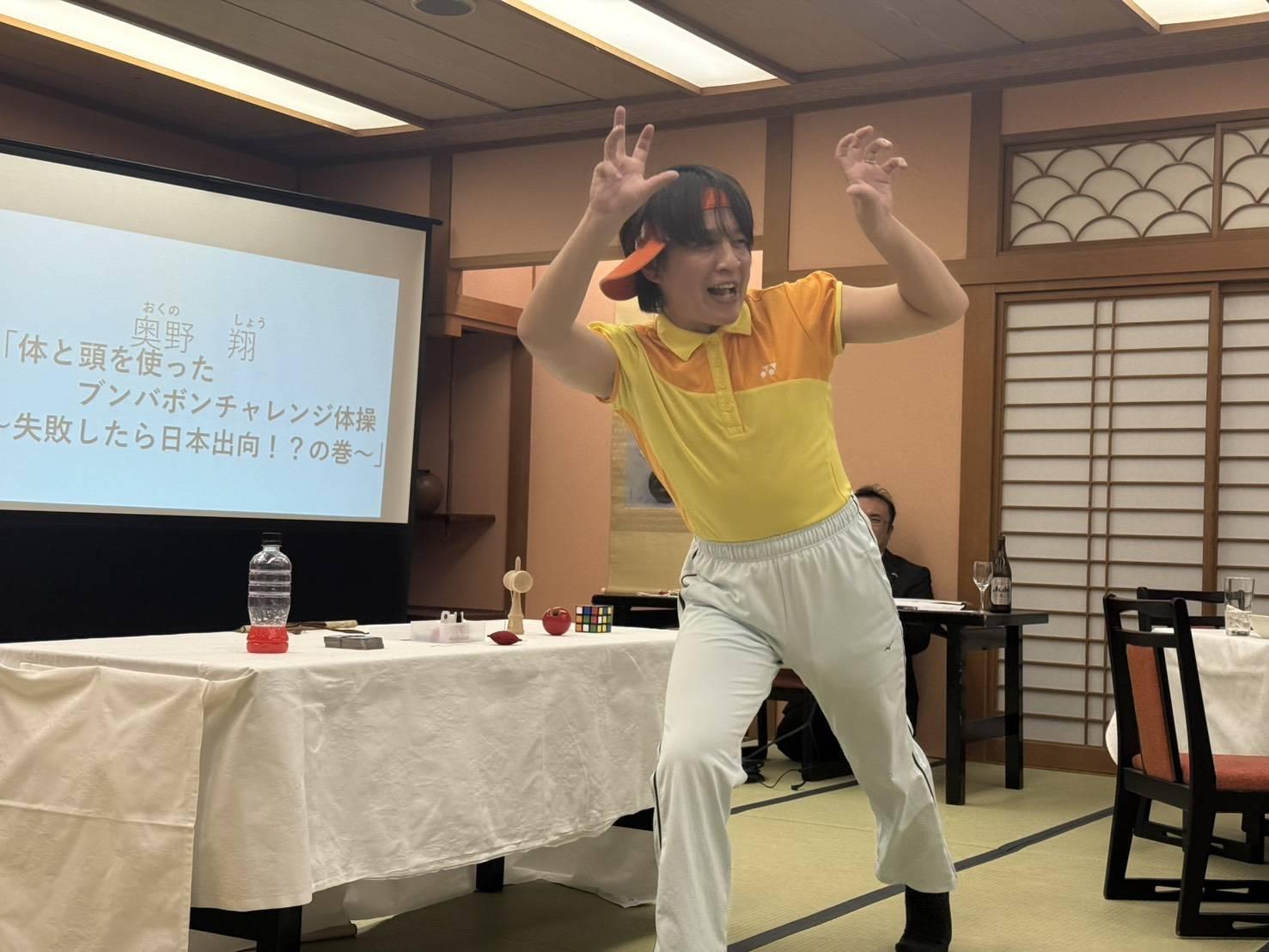 特に今回の一芸披露は、理事の皆さまに楽しんでもらうため、そして自分自身を知ってもらうためにどんな一芸がいいかひたすら悩みました。ダチョウの産卵、蜘蛛の神秘、西村ヒロチョetc…何がいいか本当に悩みましたが、その中で舞い降りたのが「体操のお兄さん」でした。