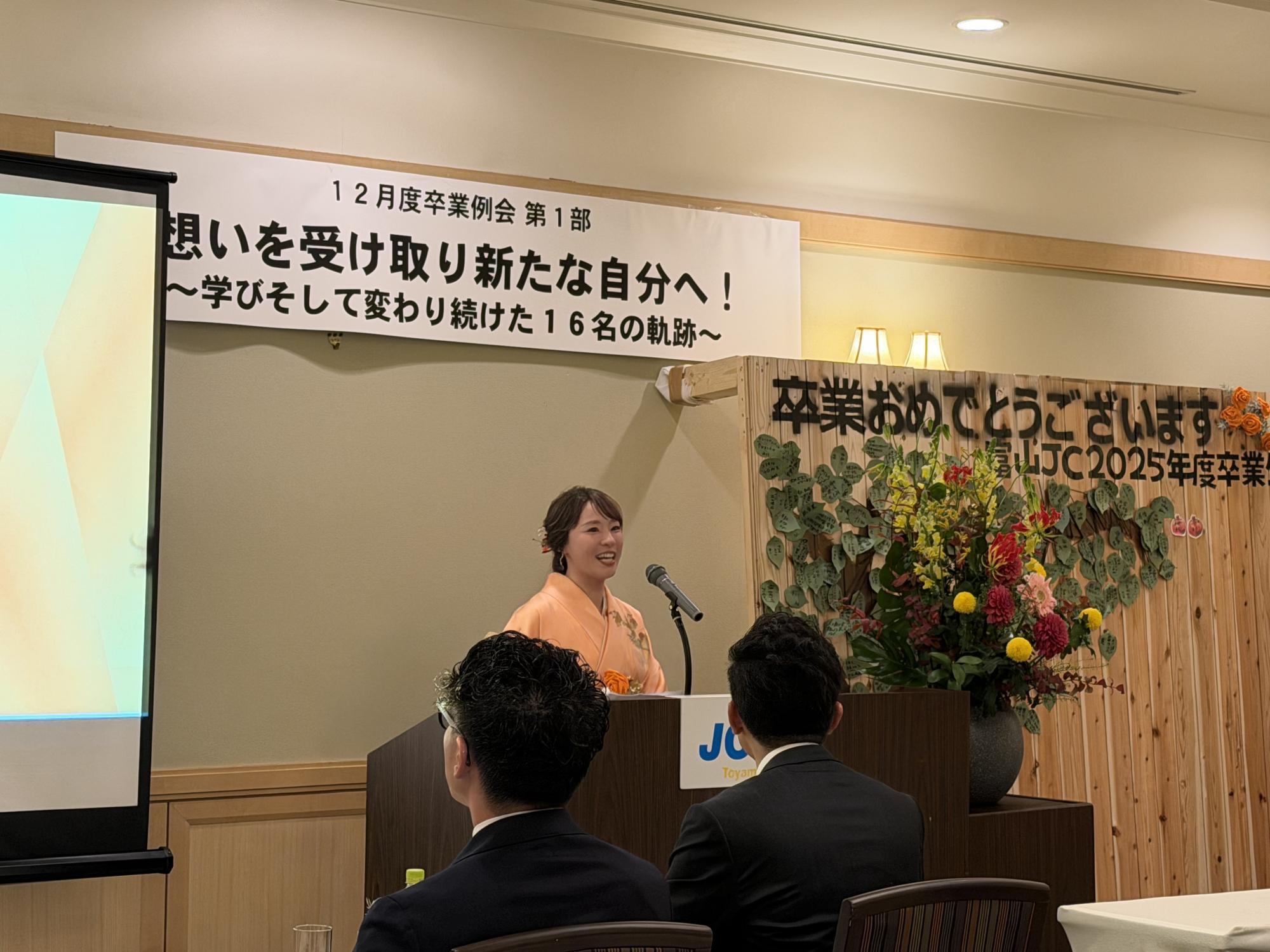 最後に、これまで自分に関わっていただいた皆さま、本当にありがとうございました。JCは卒業となりますが、同じ時を過ごした御縁を大切に、今後も皆さまとお会いできるのを楽しみにしています。今後ともよろしくお願いいたします。