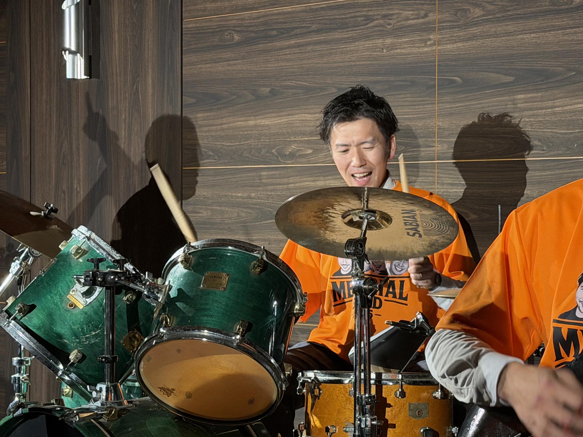 そして、第2部では僭越ながらアトラクションでギター演奏を担当させていただきました。人前でギターなど弾いたこともなく不安で夜しか寝れない日々が続きました…。しかし一緒に演奏してくれた同期の奥野翔ちゃん。ボーカルの井上さん、田島さんの支えもありなんとか乗り切ることができました。いざ本番を迎え緊張もしましたが、浅井委員長からの激励のヤジのおかげで一気に緊張がほぐれました。いつも本当にありがとうございます。。。